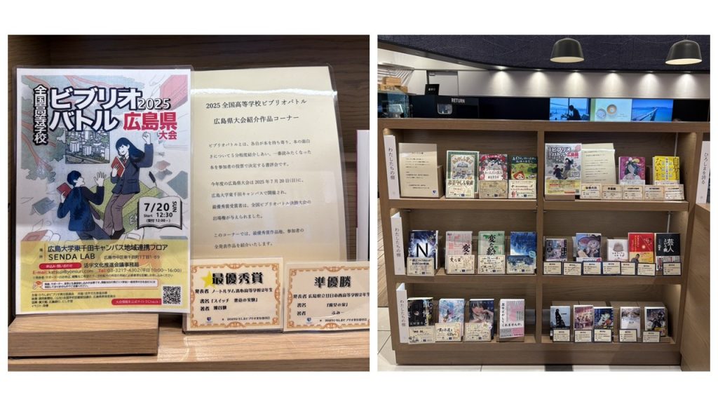 ・ひろぎんホールディングス本社ビル1階のトィモロウスクエアでは、ビブリオバトル広島県大会で高校生たちが紹介した本が展示されています。